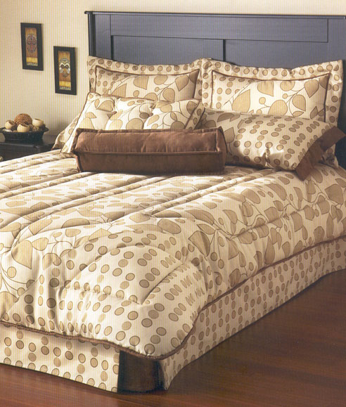 A fun and flirty twist to a typical floral bedding design, Astuce by Patlin Textiles is a great option for a guest bedroom. The warm, neutral color palette is accentuated with just the right touch of warm chocolate browns. The design is original and eye-catching with the mix of florals and polka dots. Astuce by Patlin Textiles is available in Twin to Super King size comforter and duvet cover sets. Coordinating sheet sets and decorative pillows are also ideal options to complete the look easily and like a professional.