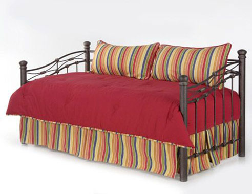 Camp 1830 by Southern Textiles Daybeds is fun and exciting. A great option for any child's bedroom; it's definitely one they can grow into for years to come. A bold color palette and a great striped pattern is appealing to the eye. 100% cotton materials mean it feels as comfortable as it looks. The Camp 1830 by Southern Textiles Daybeds is available in an ensemble as shown and includes the bed skirt and two pillow shams. A perfect look for an overnight room for your guests.